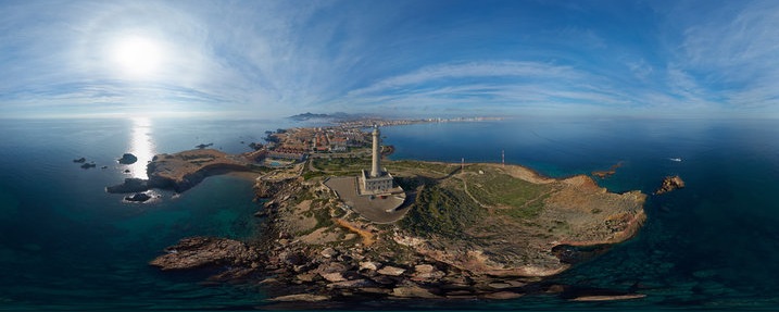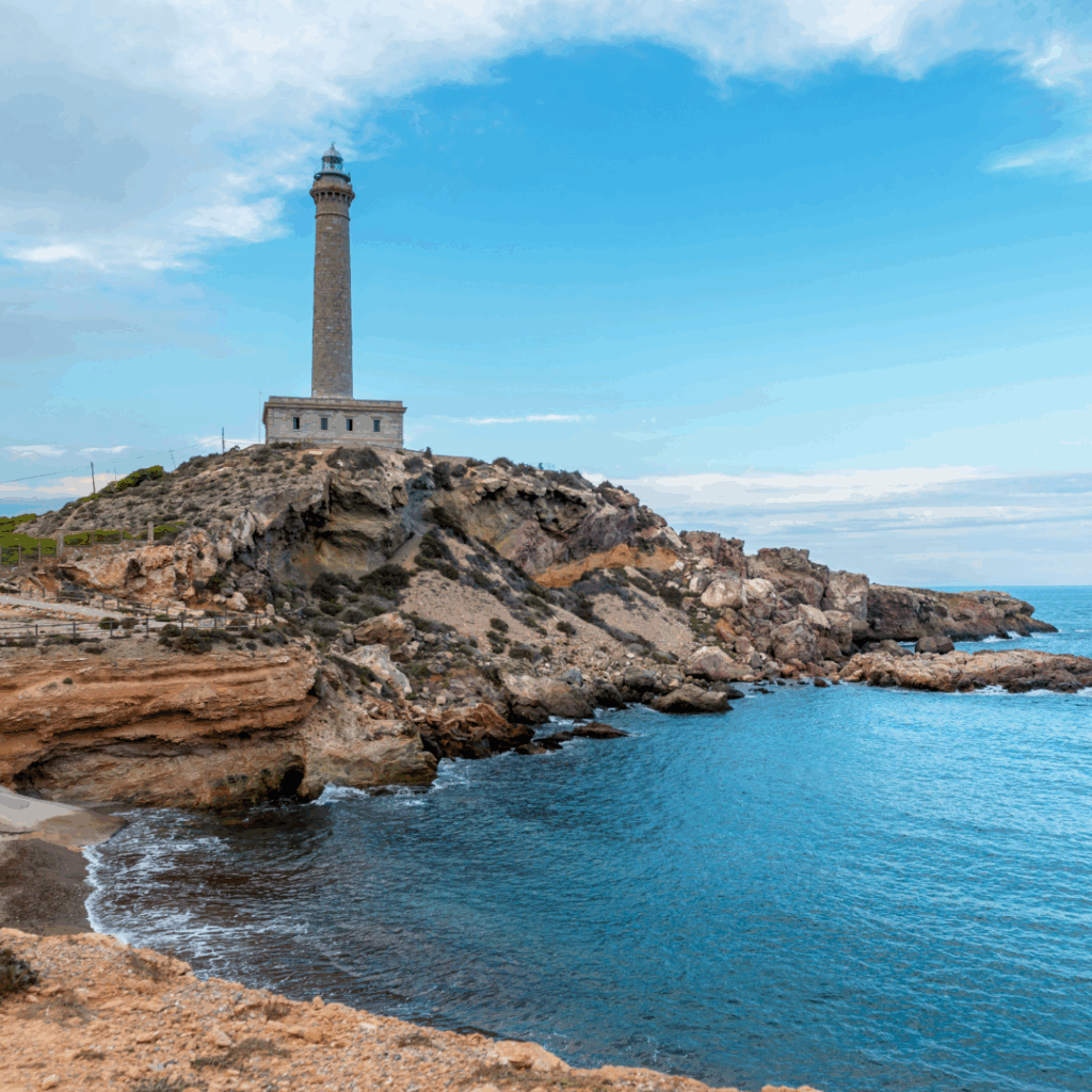 Vista panorámica del Faro de Cabo de Palos desde el agua